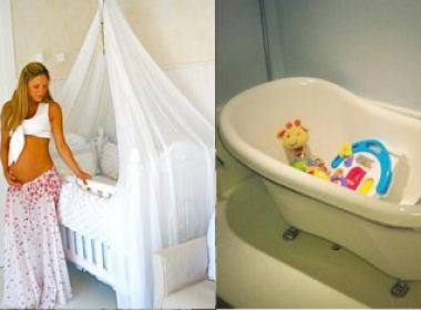 uma foto da banheira que seu primogênito usou, e que agora servirá para o